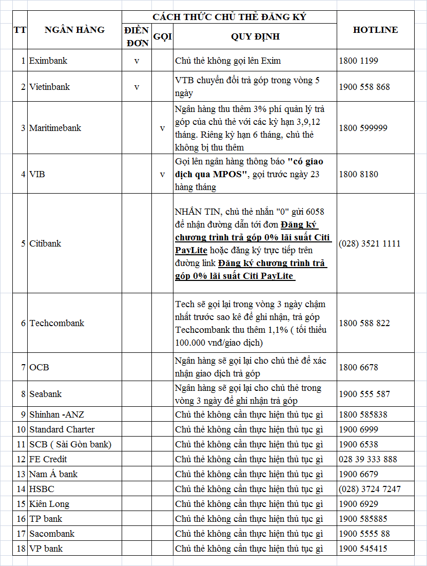 - Chủ thẻ không được huỷ giao dịch trả góp sau khi giao dịch