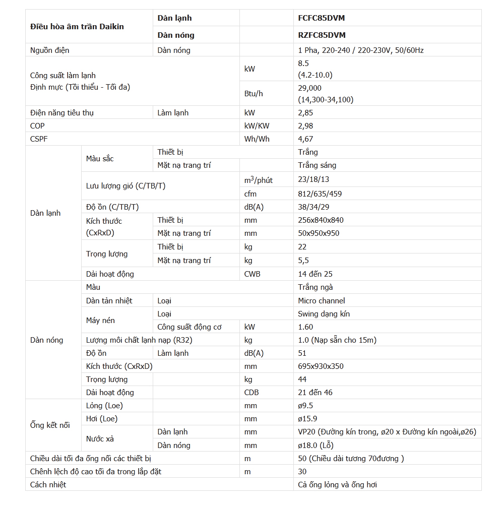 Tất cả các dòng máy lạnh âm trần Daikin có thể lắp đặt mà không cần sử dụng thiết bị nâng, dễ dàng lắp đặt trên các trần nhà hẹp.