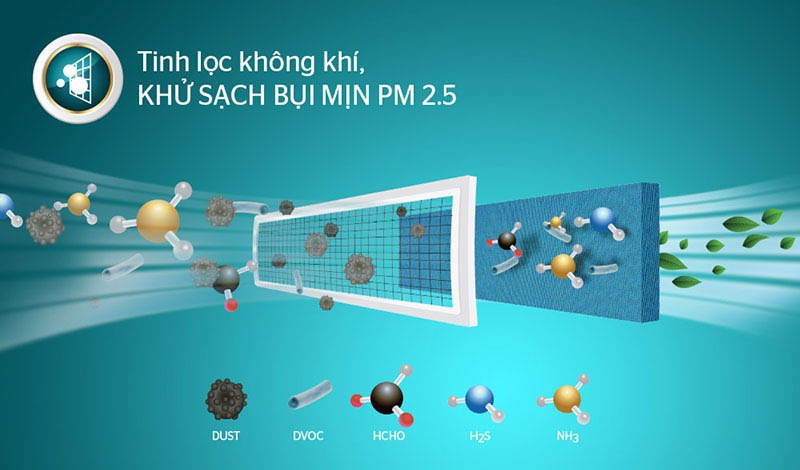- Màng lọc kép – Tinh lọc không khí, khử sạch bụi mịn PM 2.5