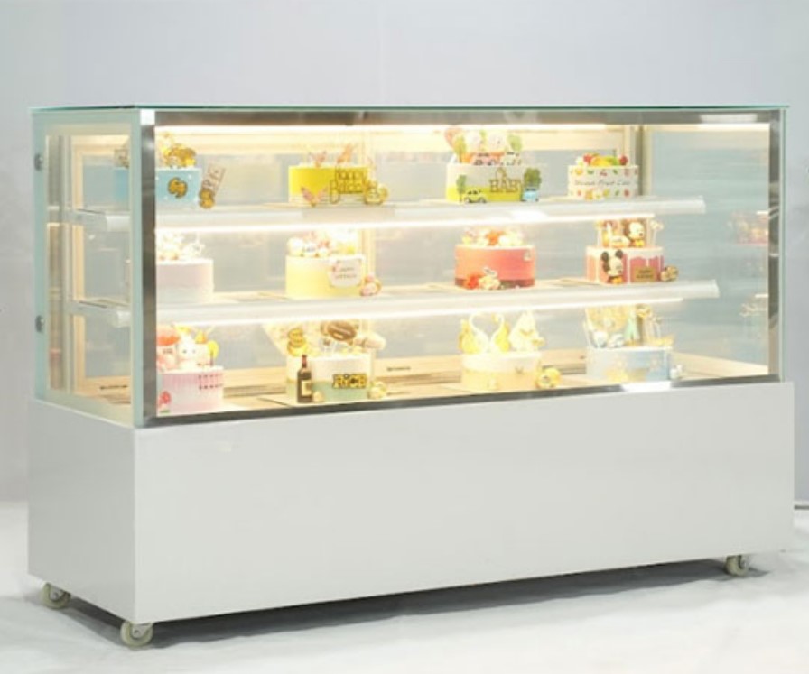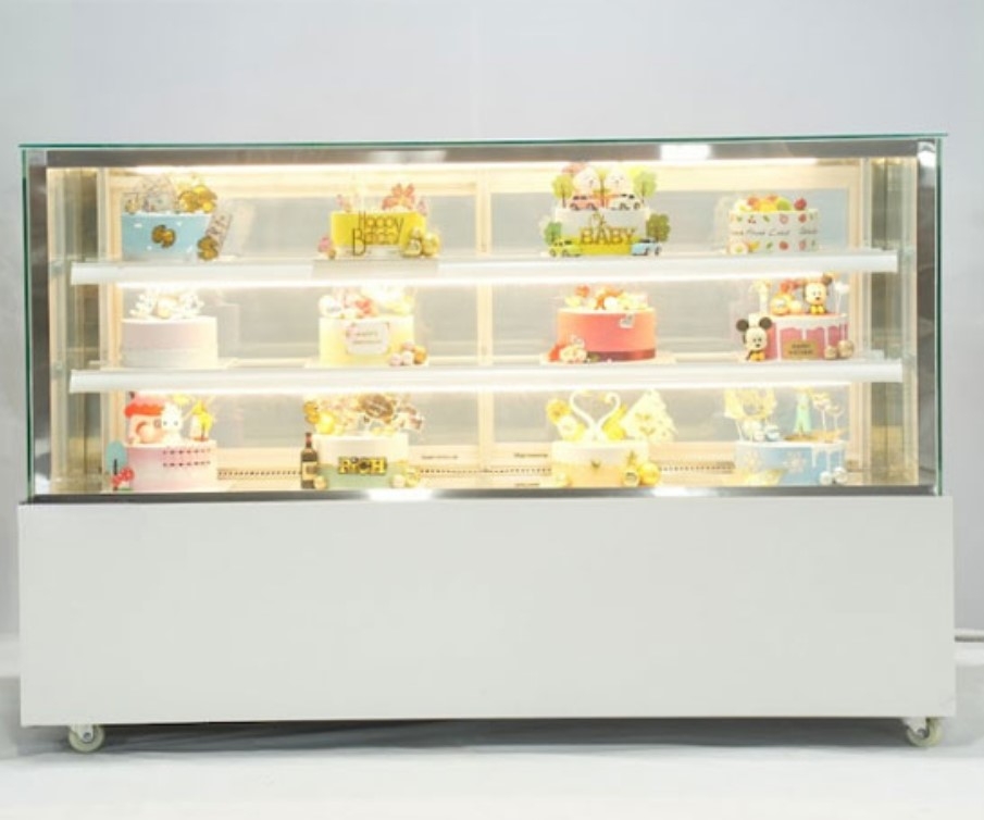 Tủ bánh kem 1.8m kính vuông 3 tầng trắng