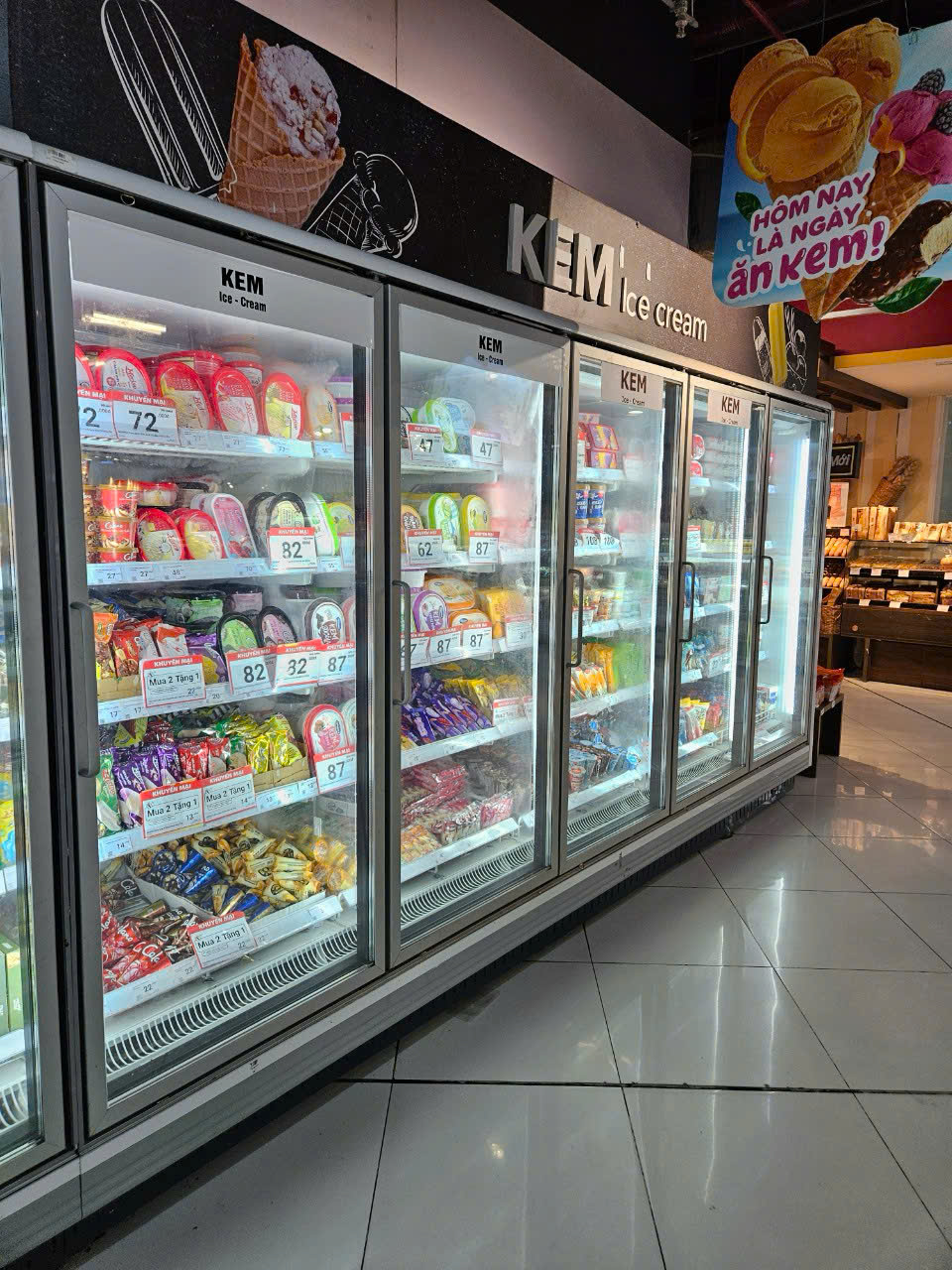 - Tủ đông có 5 cánh mở, có vĩ trưng bày nên giúp khách dễ dàng lựa chọn sản phẩm, không mất đi tính thẩm mỹ của không gian trưng bày, đồng thời bản quản được nhiệt độ bên trong.