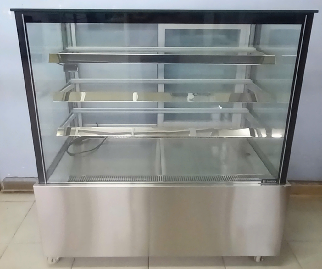 Tủ trưng bày bánh Sanden SRK-1203G có công nghệ làm lạnh hiện đại và thiết kế kính vuông sang trọng. Bánh lung linh dưới ánh đèn LED, làm nổi bật màu sắc và mẫu bánh kem. Hệ thống làm lạnh tối ưu giúp duy trì nhiệt độ ổn định, phù hợp cho nhiều loại hình hoạt động.